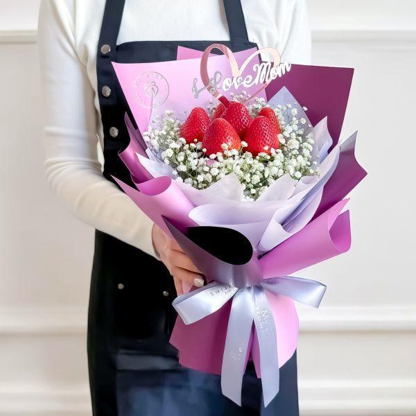 草莓花束不僅外型漂亮,也是可以食用的甜蜜禮物。